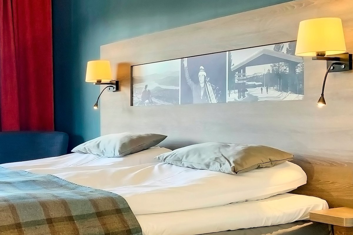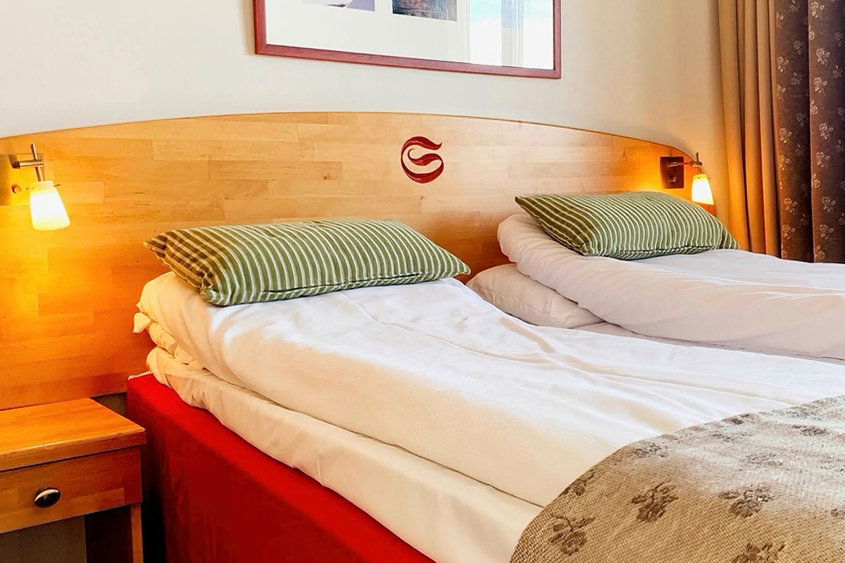 Guest room 20 m2: Cozy guest room with twin beds 90*200 cm, 2 chairs, table, 49 inch flat screen, wardrobe and shower and toilet. Vinyl stick on floor. Balcony. Sofa bed in some rooms, contact Savalen Booking. Dogs allowed in some of the rooms, additional cost.