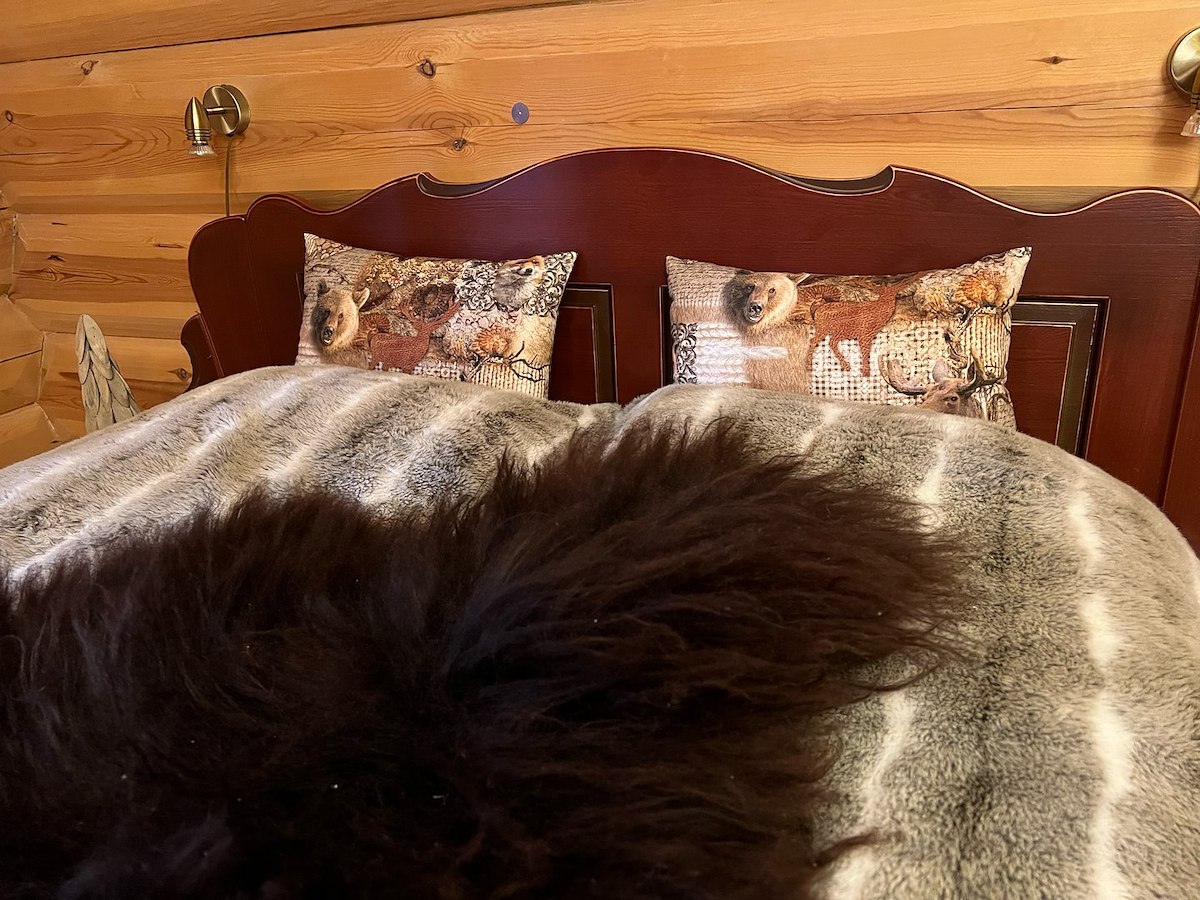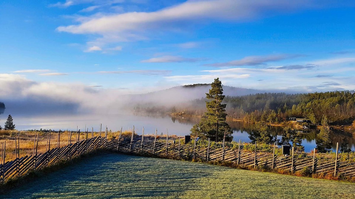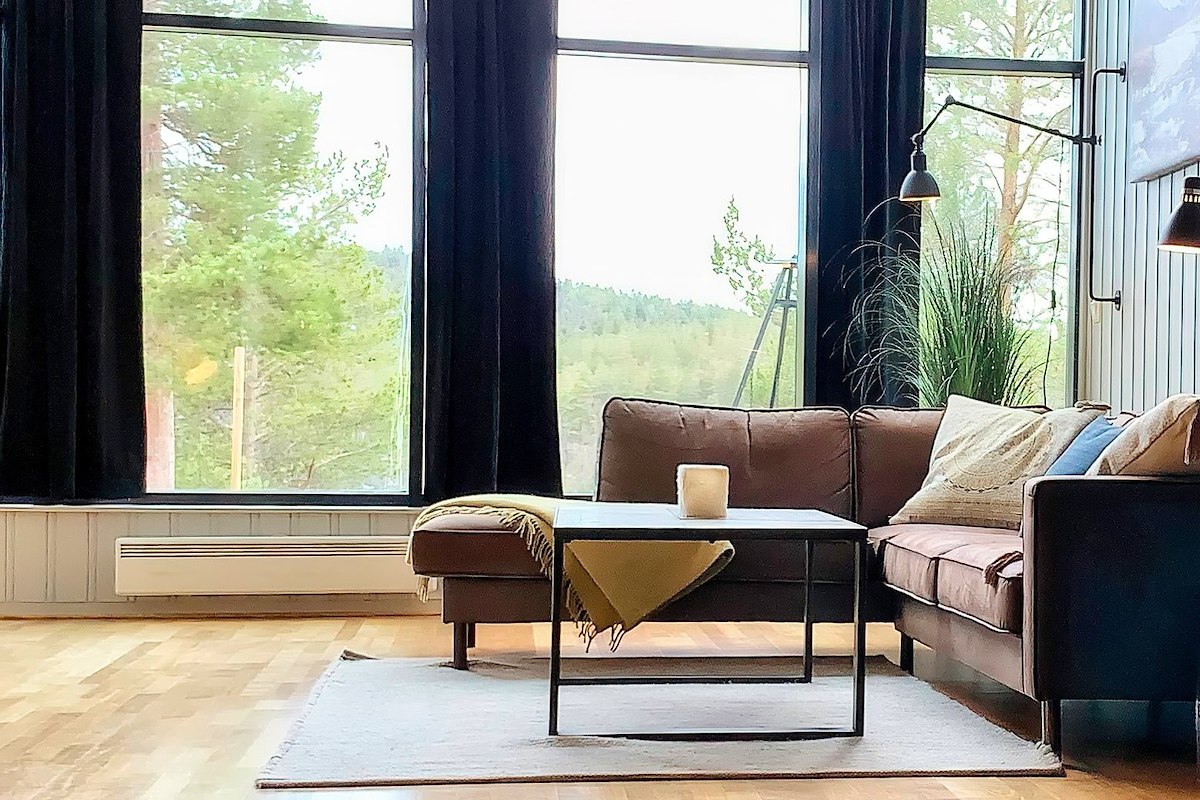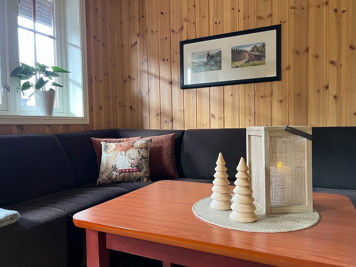 Guest room 18 m2: Cozy guest room with double bed 160*200 cm, sofa bed, coffee table, 49 inch flat screen, fridge, wardrobe, shower and toilet. Vinyl stick on floor. Large glass windows with a view of the lake Savalen. Terrace. Dogs allowed in some of the rooms, extra.