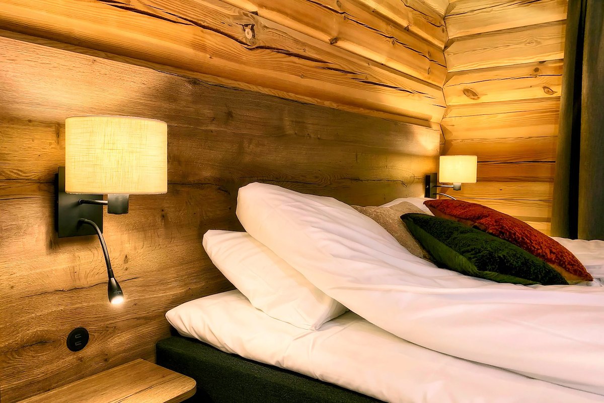 Suite 124 m2: Large suite over two floors. with a large glass facade overlooking the Savalen. 2nd floor: Entrance hall, kitchen, bathroom with shower and toilet, bedroom with double bed 180*200 cm and bunk bed 75*200 cm. 1st floor: Living room with a view, double bed 180*200 cm, fireplace, 55 inch flat screen. Bathroom with jacuzzi, shower and toilet. Sauna. Bedroom with double bed 180*200 cm and bunk bed 75*200 cm. Parquet floor. Total beds for 10 people.