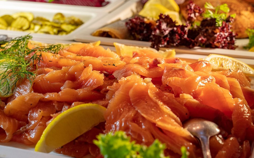 Vi serverer en deilig aftensbuffè med varme og kalde retter, samt et deilig dessertbord!